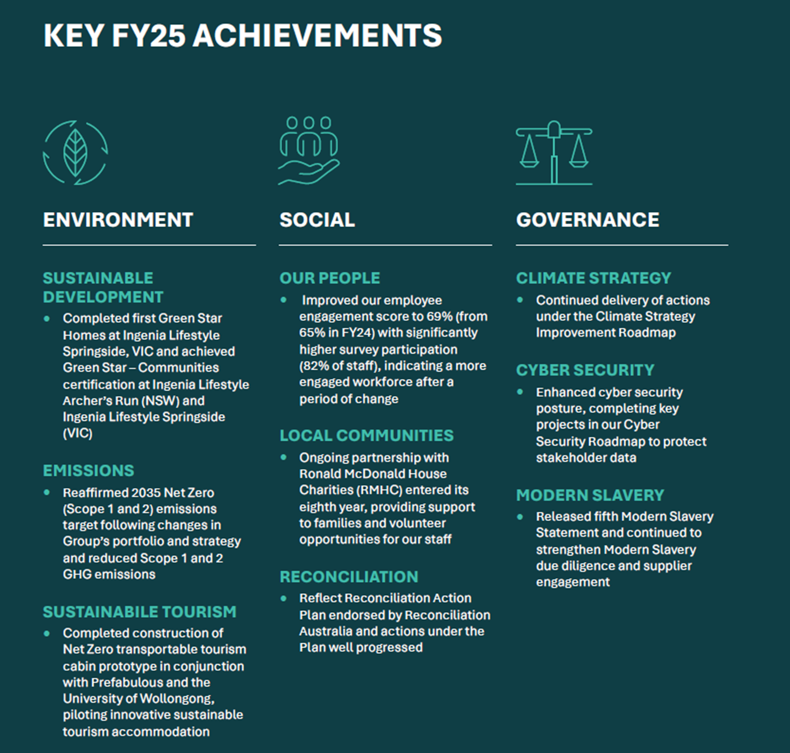 Our success is dependent on efficiently utilising land to create cohesive communities and focusing on the wellbeing of our residents. Delivering a higher quality of life for our residents is intrinsically linked to our generation of sustainable investor returns.